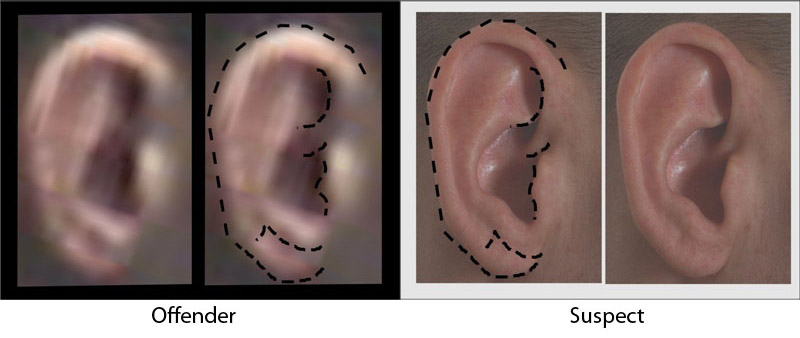 "In this case, below, West Midlands Police needed to prove that an offender and suspect were one and the same after a burglary. Available CCTV footage didn’t show a full facial view, but there was a good shot of the ear.